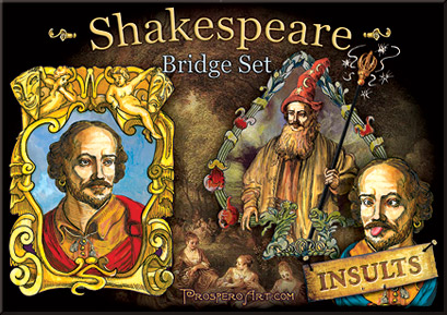 Produk ini akan meningkatkan kenyamanan Anda dari kartu apa saja yang Anda mainkan, dan meningkatkan pengetahuan di Great Bard pada saat yang sama. Kualitas bermain kartu ini, fitur didesain mewah penuh warna dalam gaya bahasa Inggris High Renaissance. Kartu-kartu fitur yang menghina Shakespeare pada setiap kartu, dengan total 54 tanda kutip di setiap deck. The aces, wajah dan kartu joker fitur historis pastiches menggunakan foto dari tuan lama seperti Michelangelo dan Rembrandt.